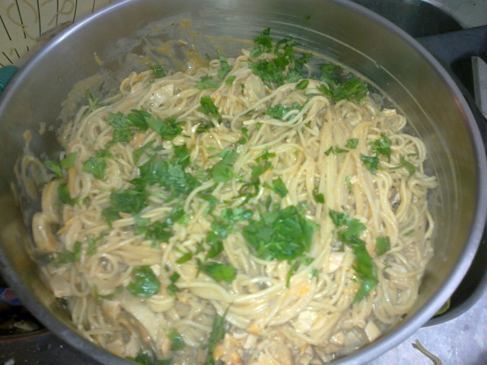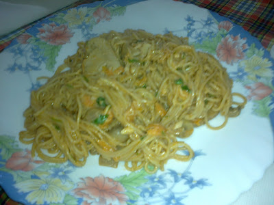 Em casa da minha mãe arranja se sempre solução! Ou pasteis fritos ou ovos mexidos!!! Mas como lhe tinha sobrado frango de tomatada e até tinha lá noodles que a minha tia tinha comprado!!!